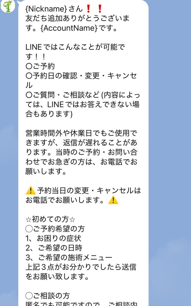 LINE予約・問い合わせについて