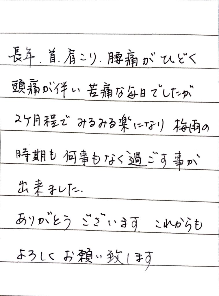 - マッサージに行ってもすぐにまた痛みが戻ってしまう