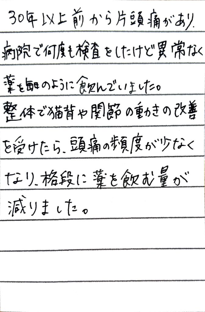 一時的に楽になってもすぐに症状が戻ってしまいがちです。