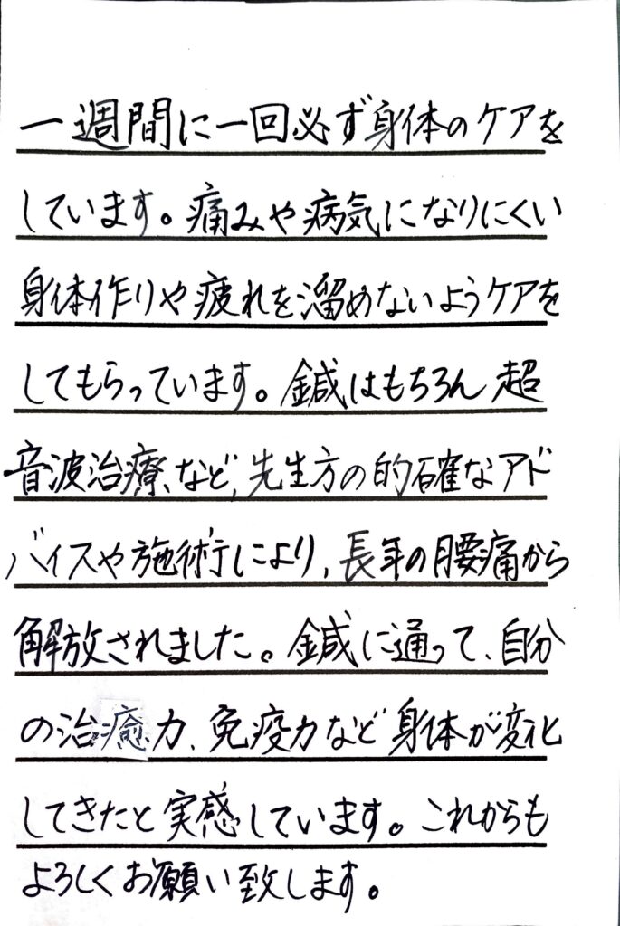 専門用語は使わず、施術方針などを事前に分かりやすく説明し、ご納得いただいてから施術を始めます。